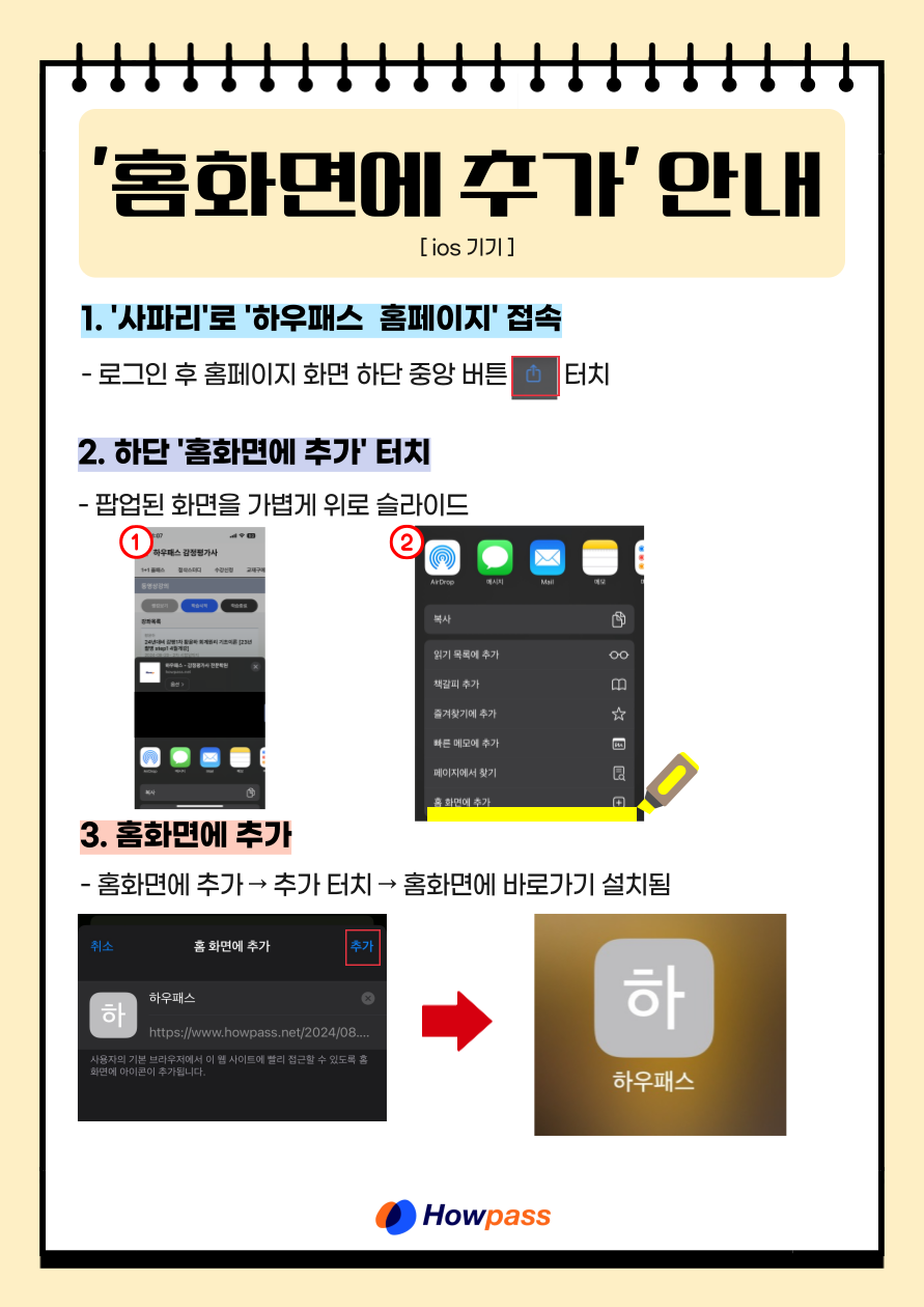 3 | 동영상 | 모바일 수강시 홈화면 추가 방법 (ios) |