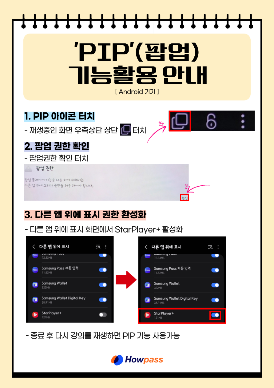 2 | 동영상 | 동영상 수강시 PIP 이용 방법 (안드로이드) |