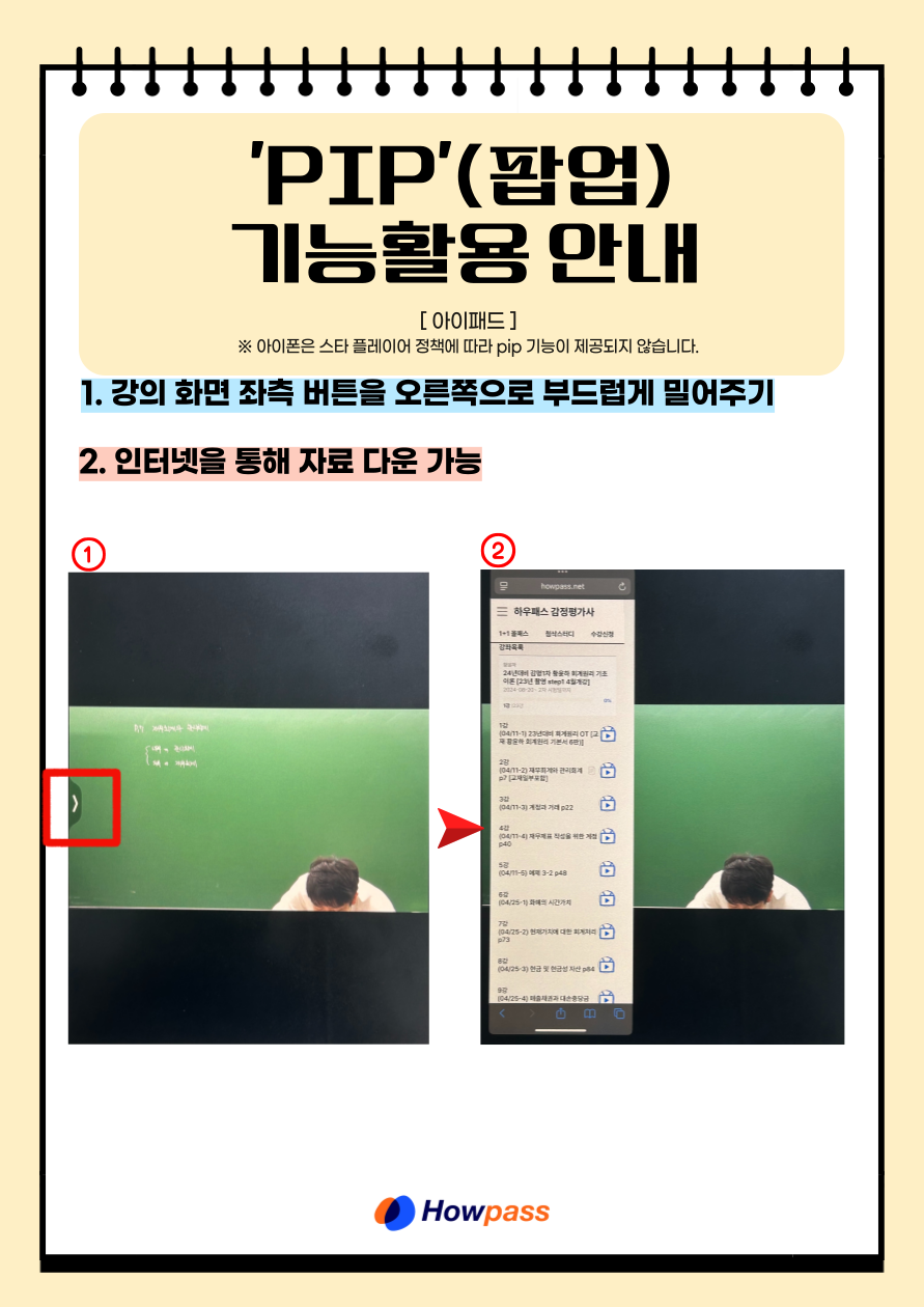 1 | 동영상 | 동영상 수강시 PIP 이용 방법 (아이패드) |