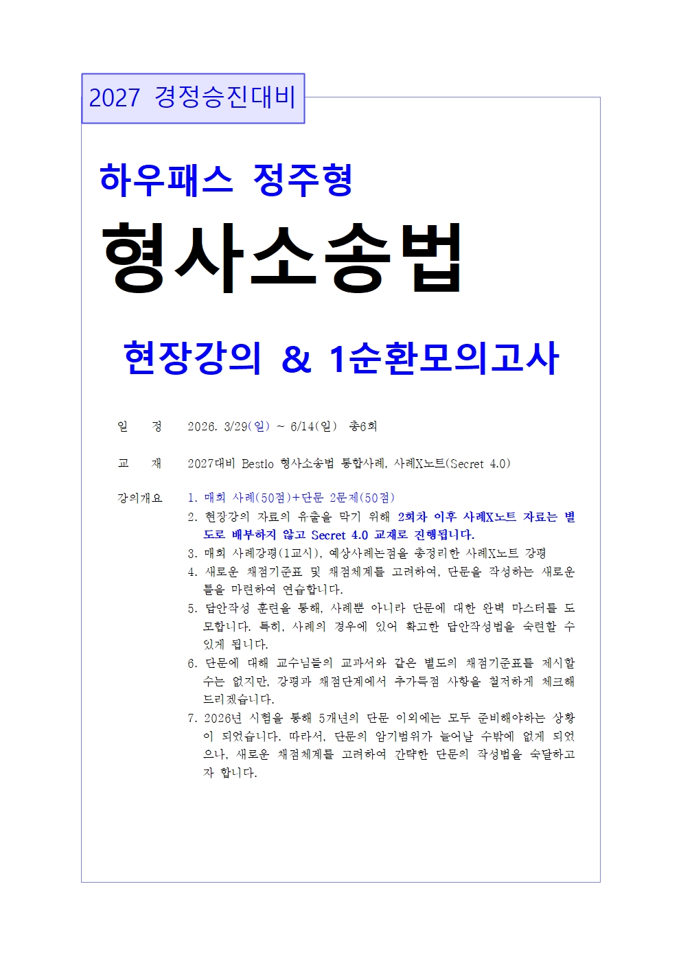 [2027 경정승진대비 현장모의고사 1순환 진도표 공지]