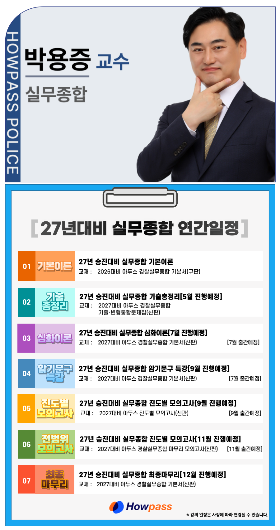 2027년 경찰승진대비 박용증 실무종합 연간 강의 일정