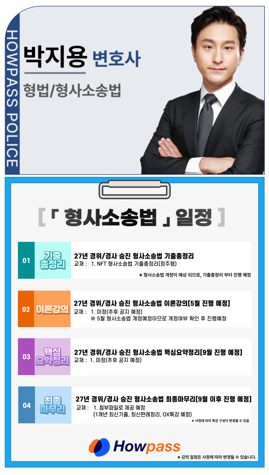2027년 경찰승진대비 박지용 형사소송법 연간 강의 일정